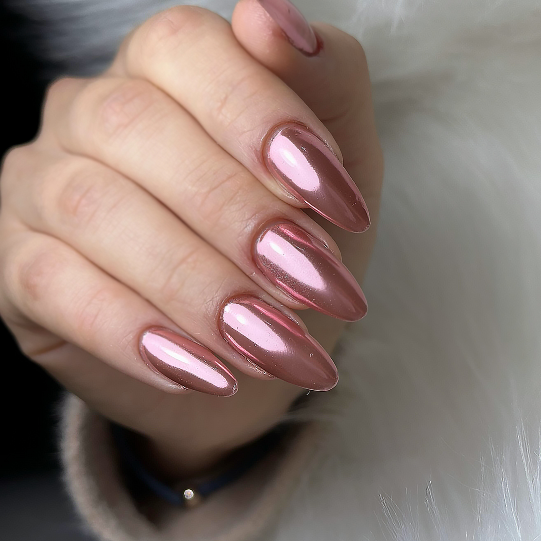 Rose Chrome Nails with Luxe Shine